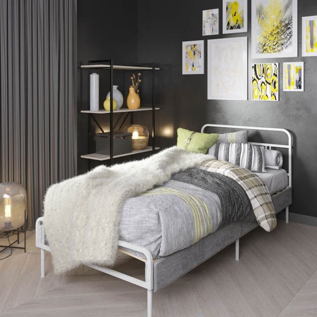 Эта кровать отлично подойдёт для детской комнаты и спальни благодаря своей универсальности и безопасности. Она легко собирается и разбирается, что позволяет экономить пространство при необходимости. Кроме того, металлический каркас обеспечивает прочность и долговечность, что особенно важно для семей с детьми.